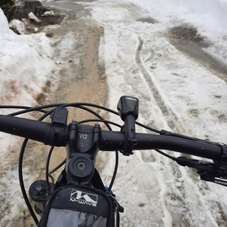 Voilà 5 heures de vélo et quelle belle surprise, les 600 mètres de dénivelés restants sont bien bien enneigés... .